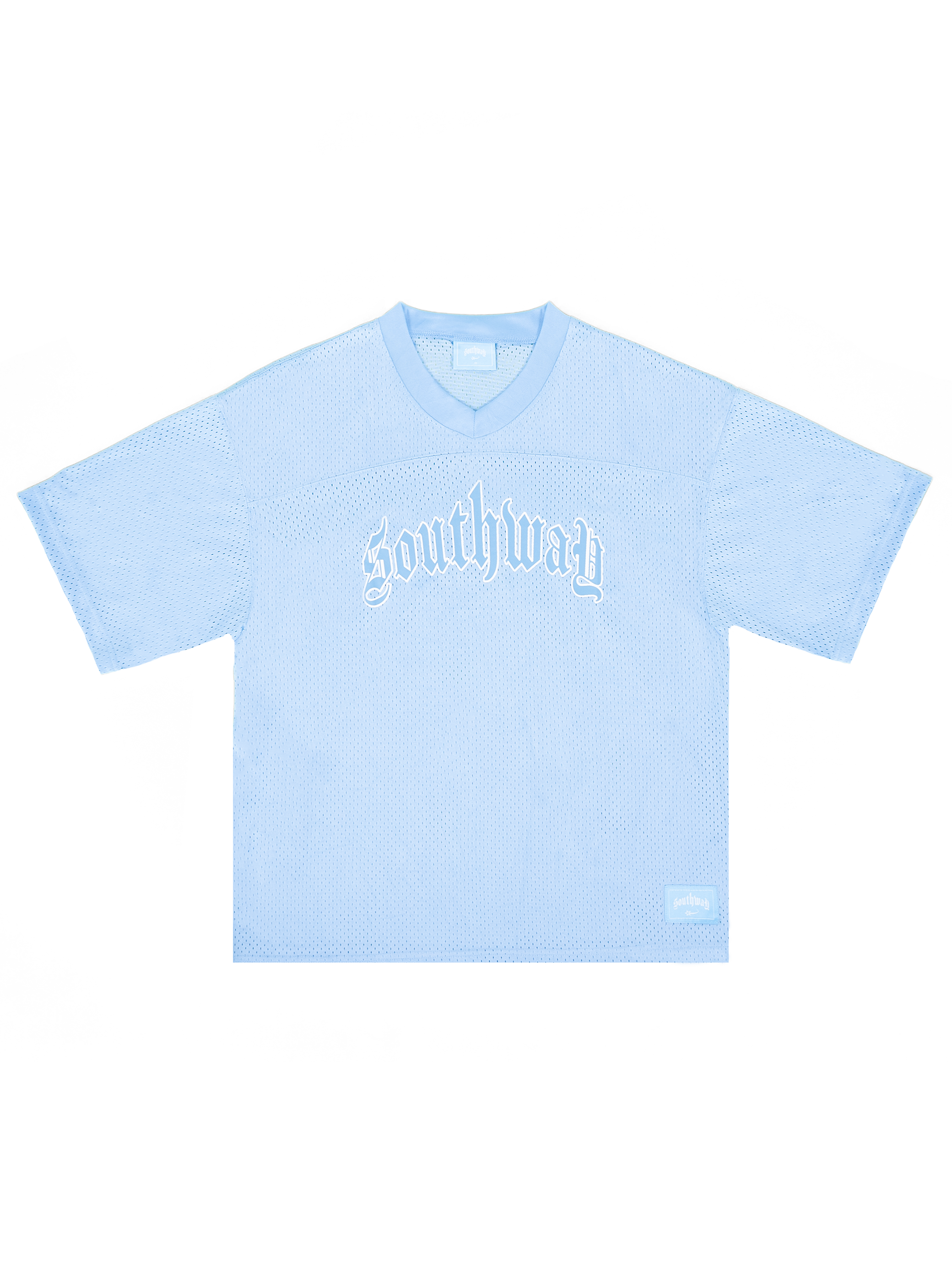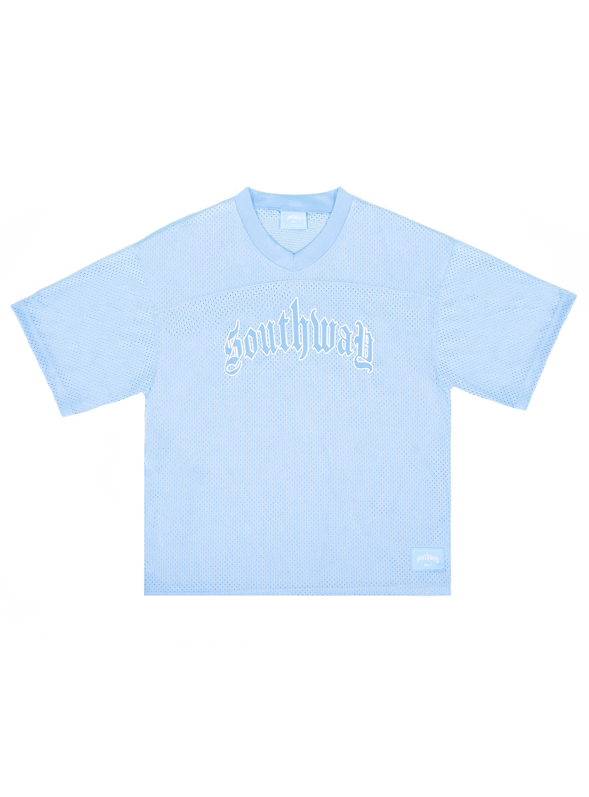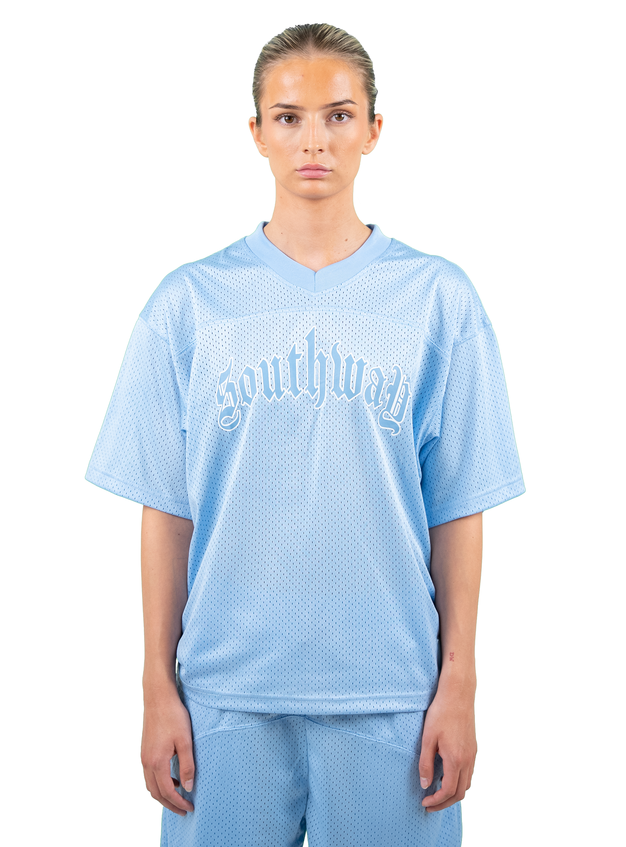𝗕𝗔𝗕𝗬 𝗕𝗟𝗨𝗘 𝗠𝗘𝗦𝗛 𝗝𝗘𝗥𝗦𝗘𝗬 PRINTED LOGO ON DA FRONT. WOVEN LABEL ON THE BOTTOM RIGHT SIDE. SHOOTING STAR LOGO PRINTED ON DA BACK. BREATHABLE MATERIAL. NO SWEAT. 𝗠𝗔𝗧𝗘𝗥𝗜𝗔𝗟 100% POLYESTER MESH