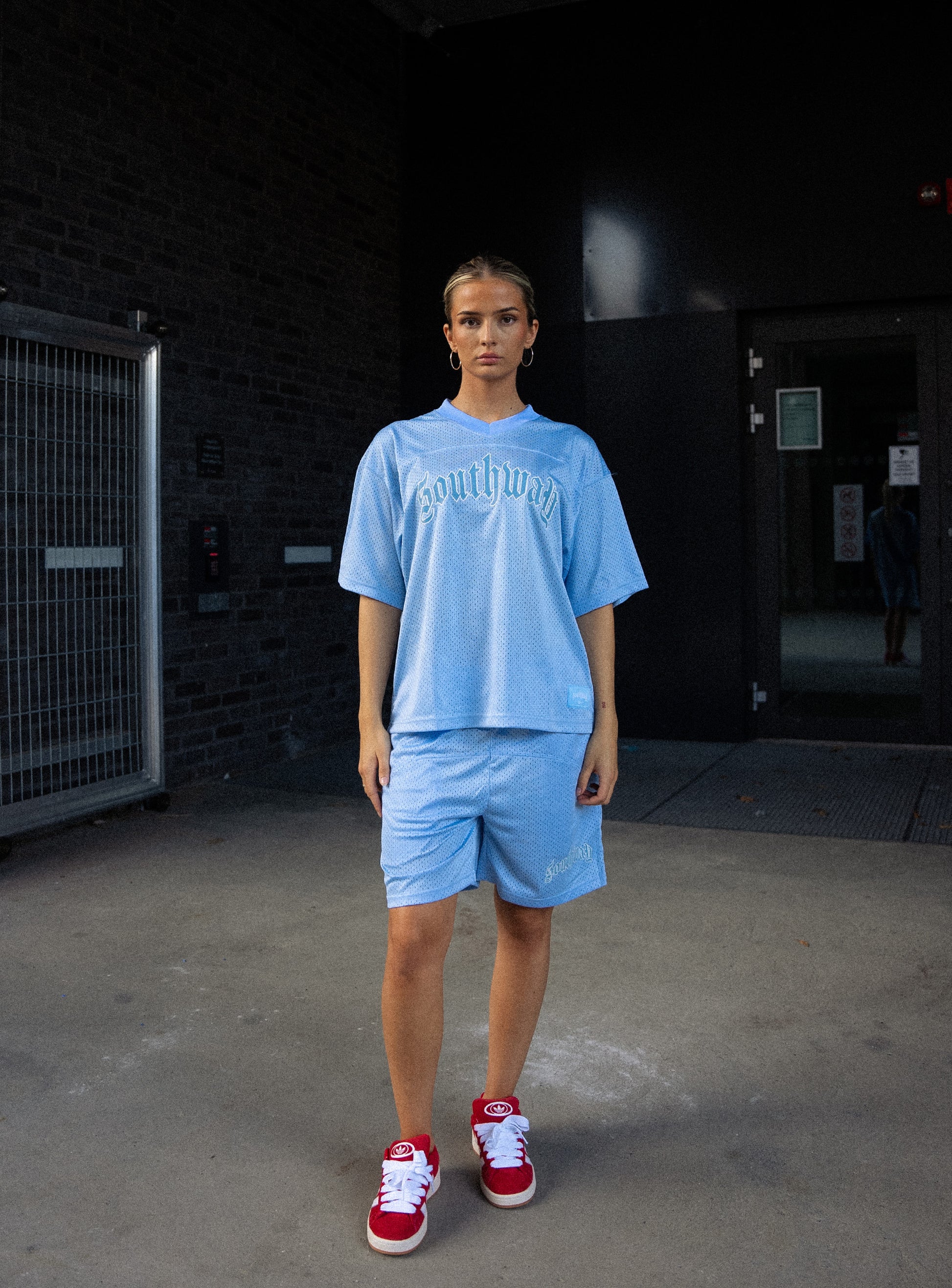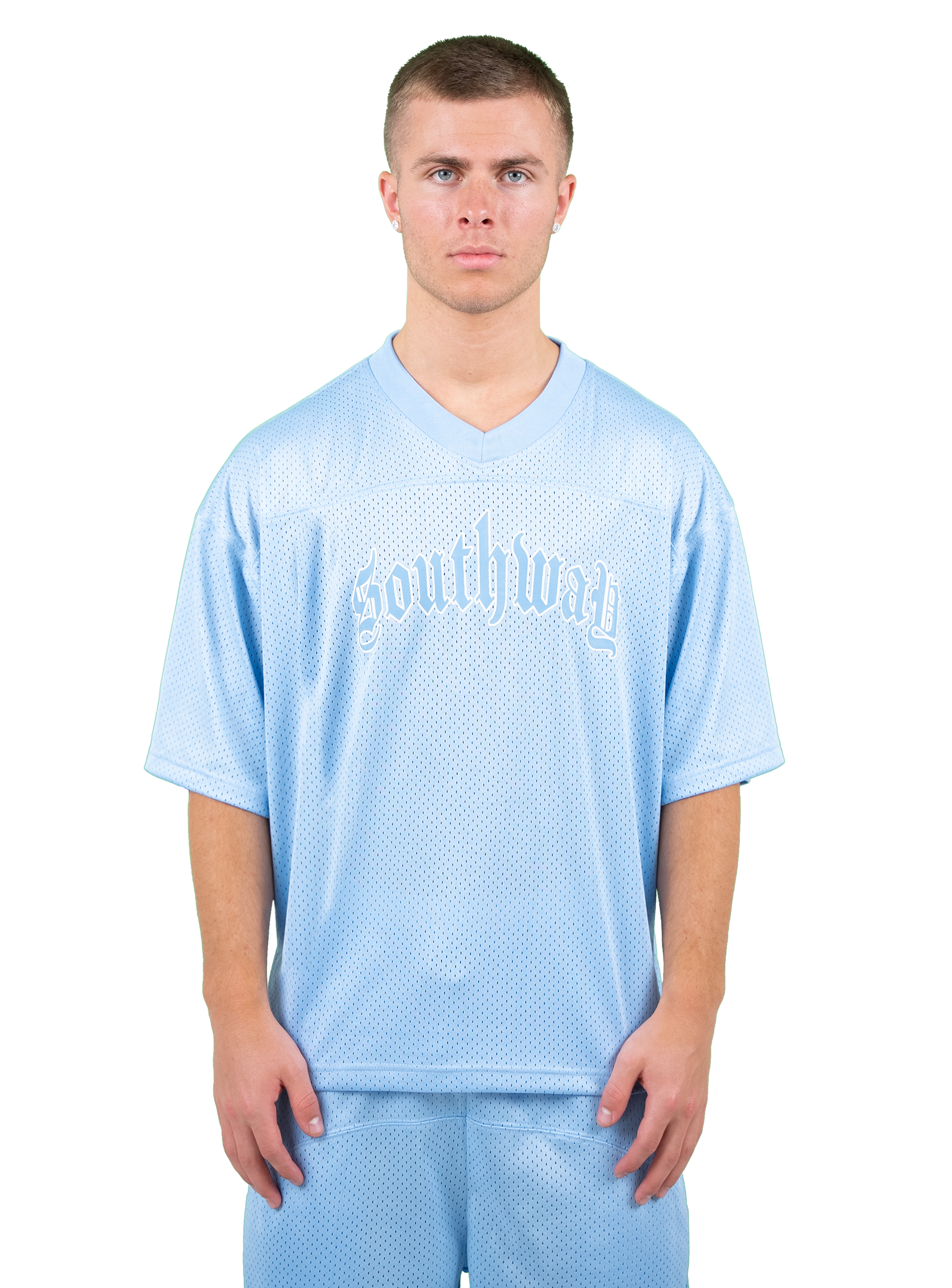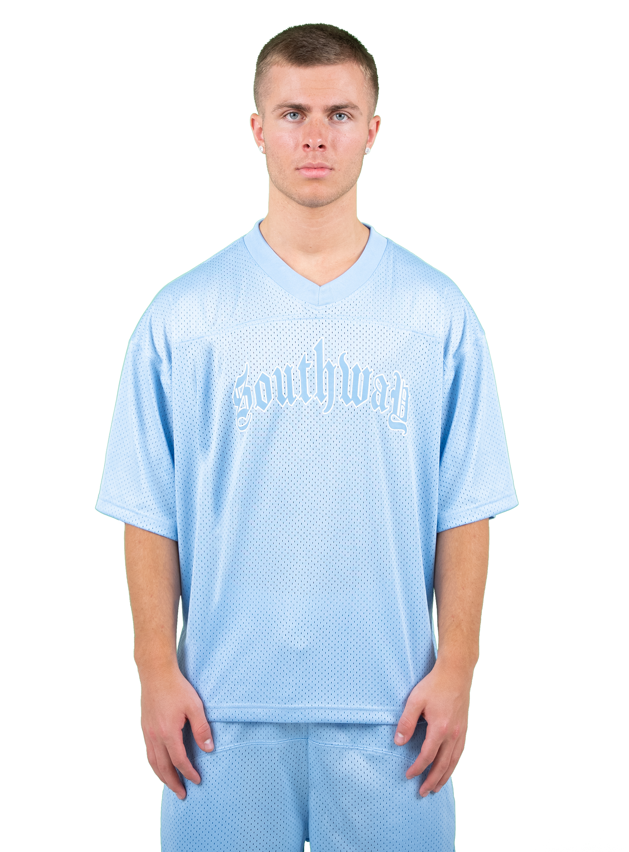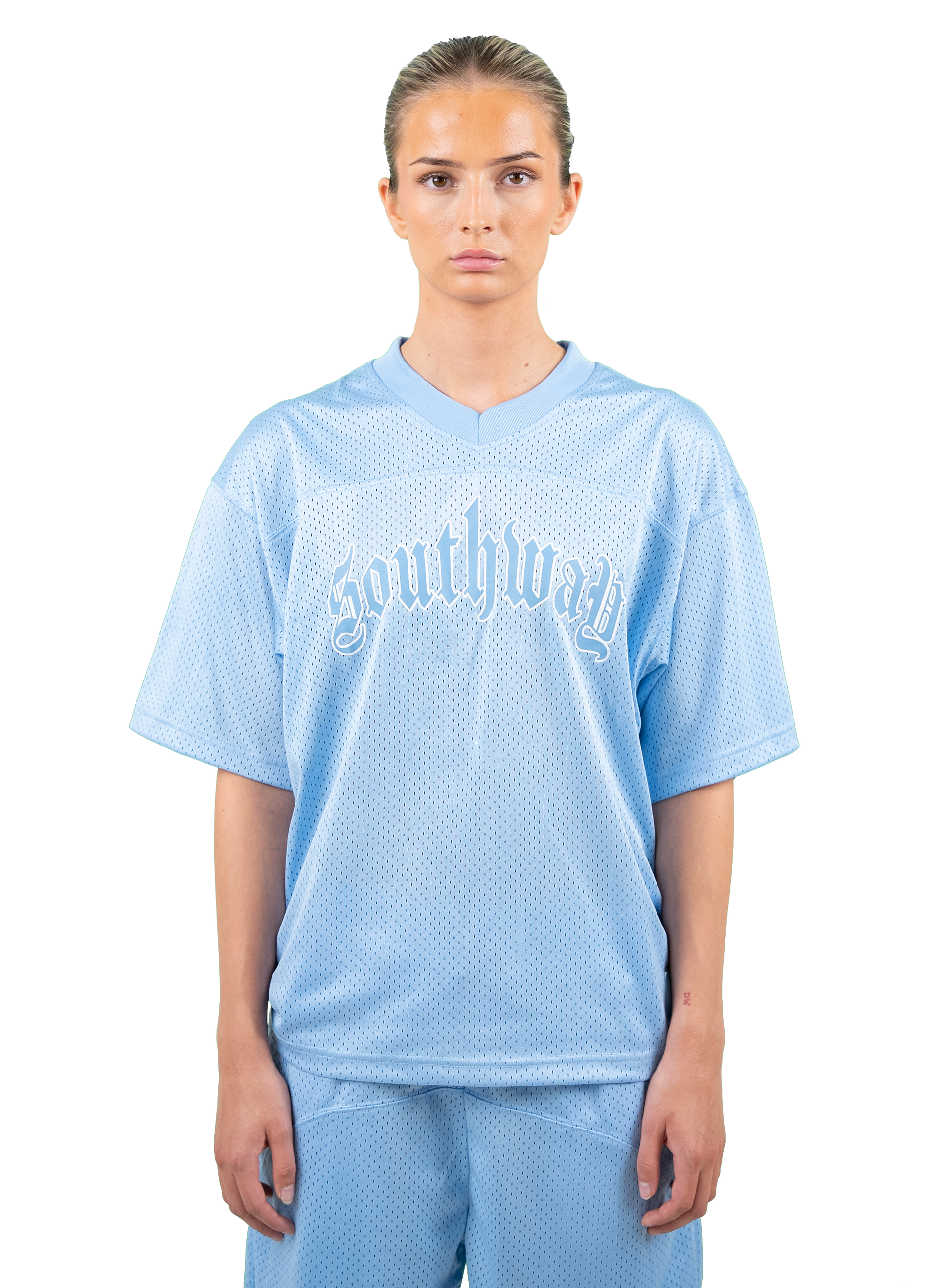 𝗕𝗔𝗕𝗬 𝗕𝗟𝗨𝗘 𝗠𝗘𝗦𝗛 𝗝𝗘𝗥𝗦𝗘𝗬 PRINTED LOGO ON DA FRONT. WOVEN LABEL ON THE BOTTOM RIGHT SIDE. SHOOTING STAR LOGO PRINTED ON DA BACK. BREATHABLE MATERIAL. NO SWEAT. 𝗠𝗔𝗧𝗘𝗥𝗜𝗔𝗟 100% POLYESTER MESH