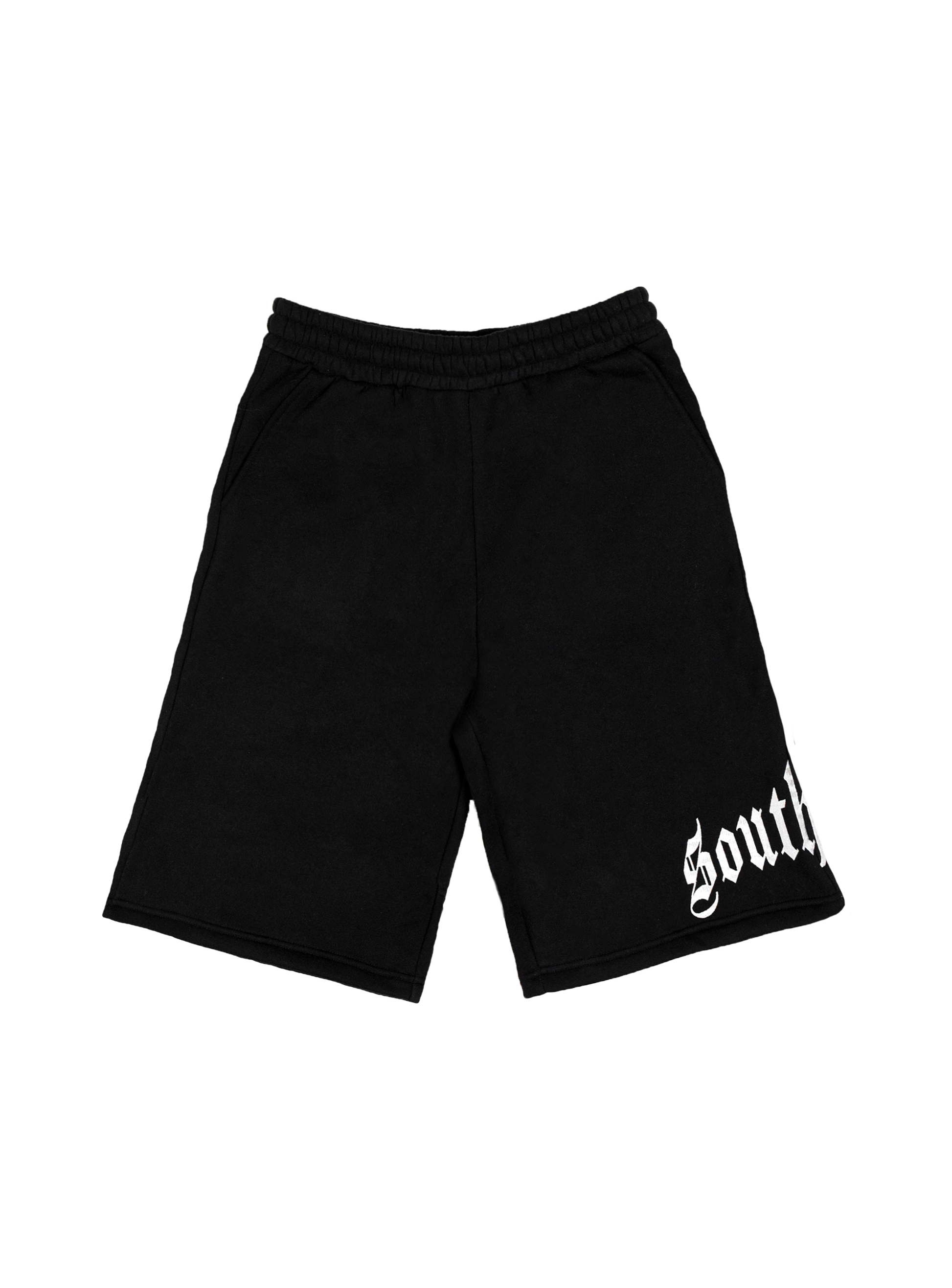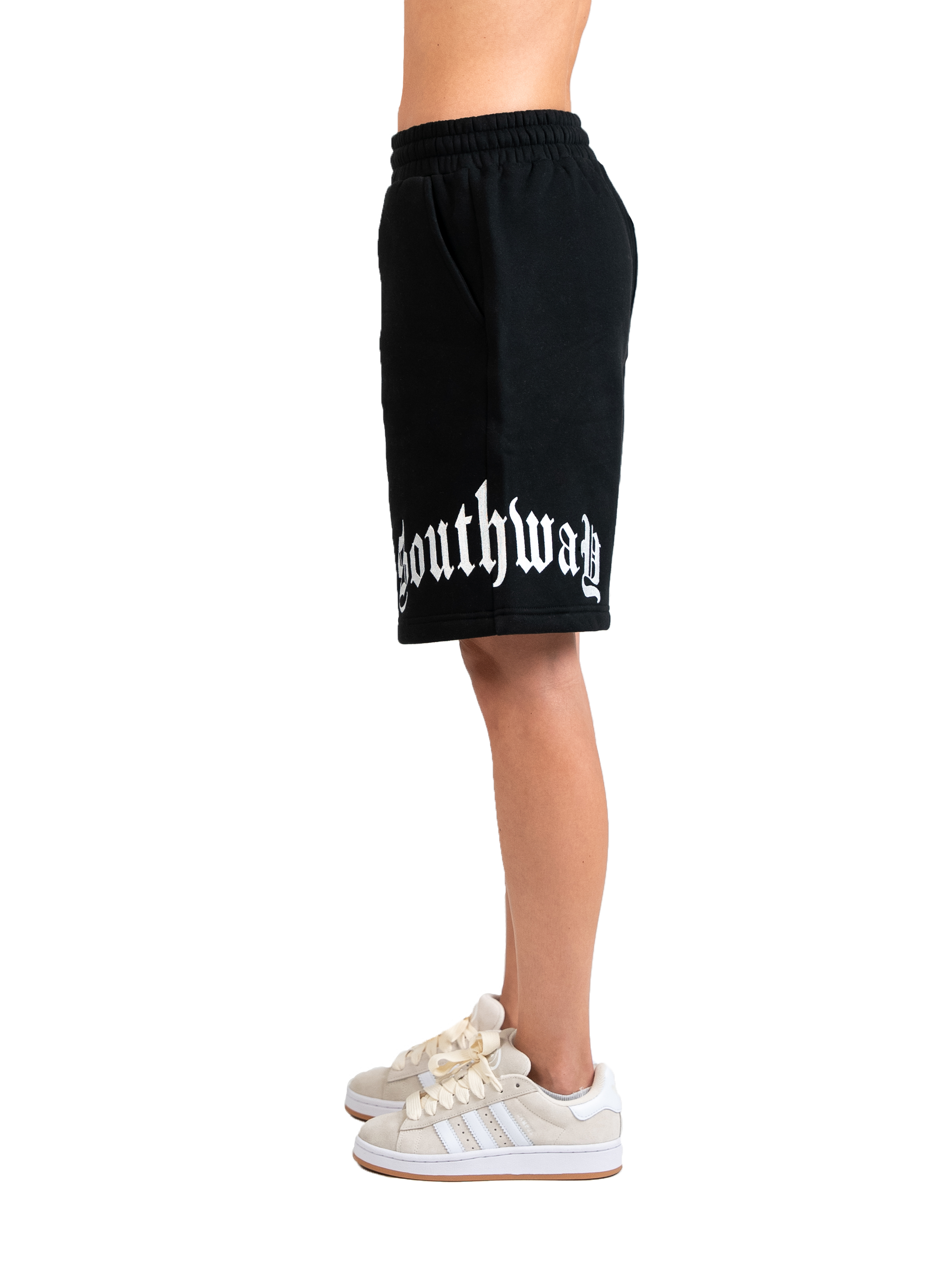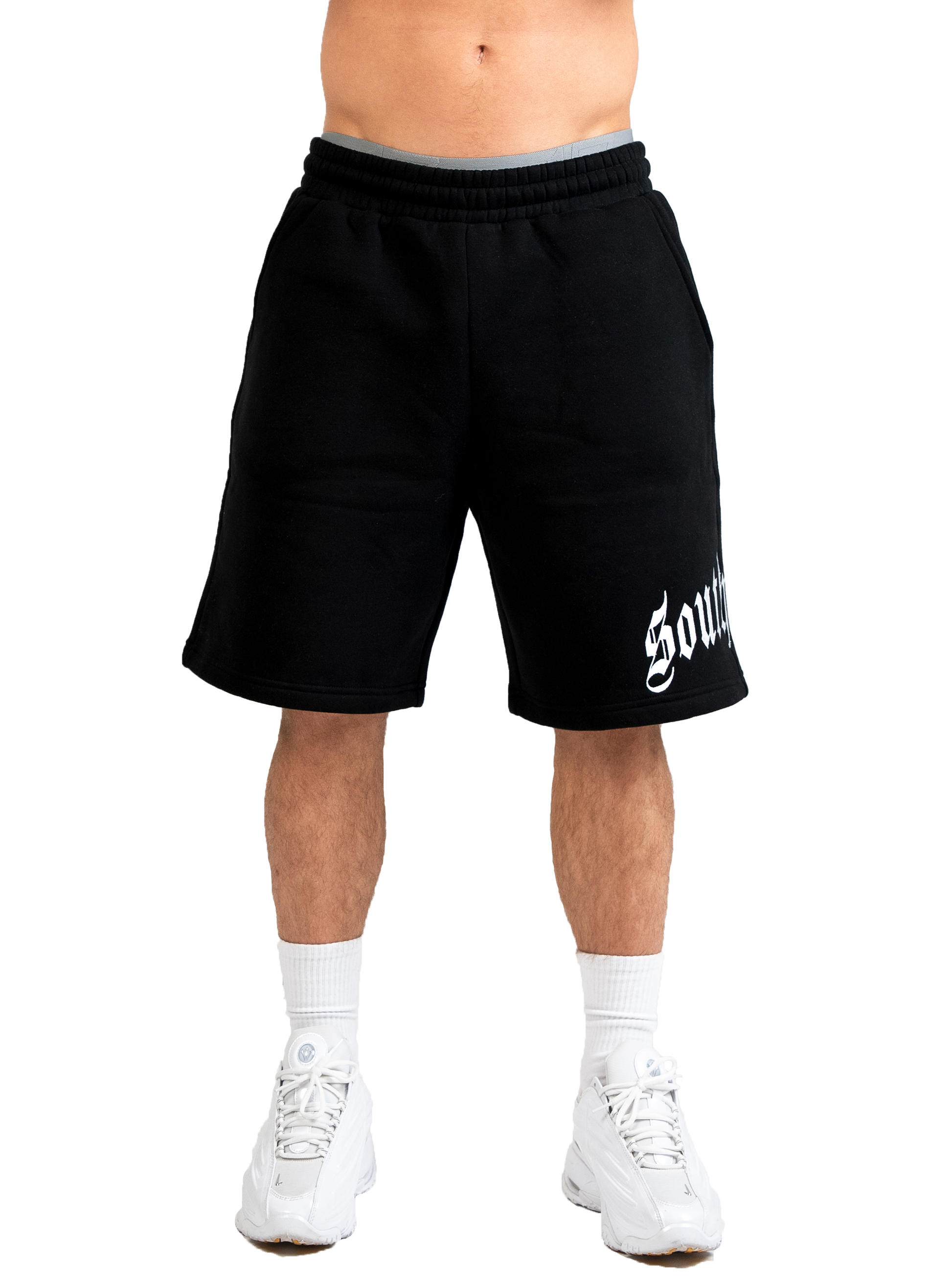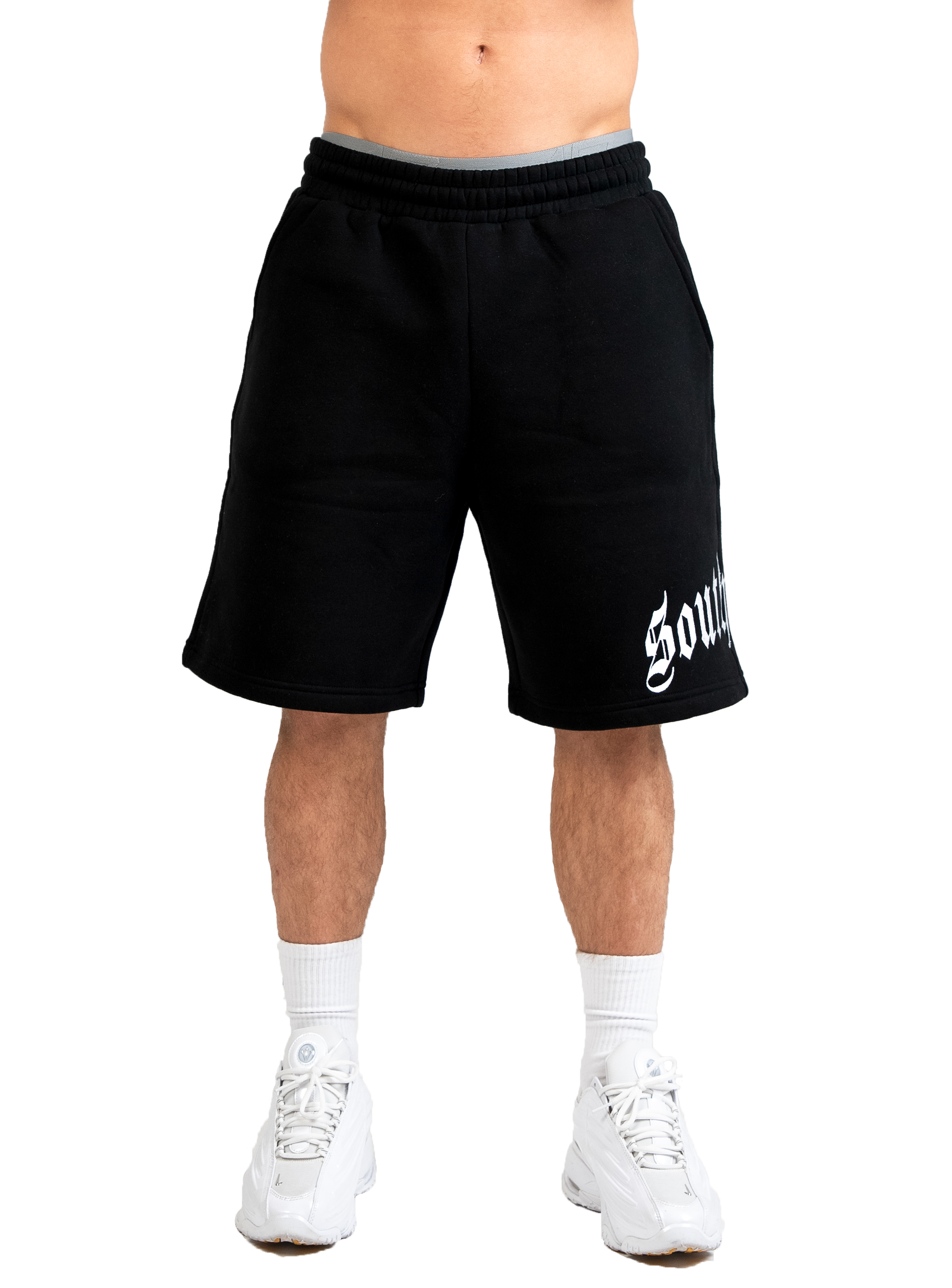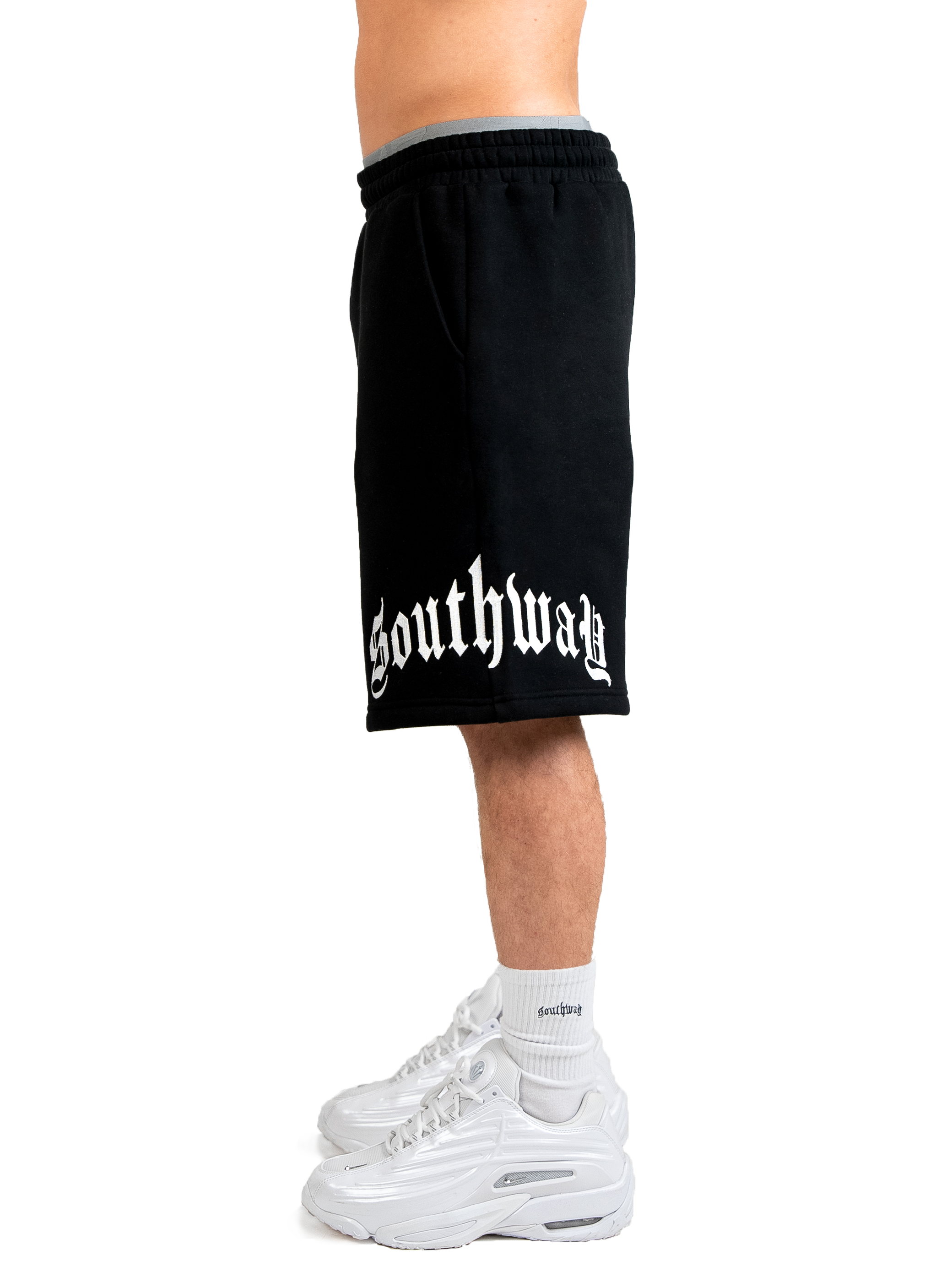 𝗦𝗢𝗨𝗧𝗛𝗪𝗔𝗬 𝗟𝗢𝗚𝗢 𝗦𝗛𝗢𝗥𝗧𝗦 - 𝗕𝗟𝗔𝗖𝗞 Our oversized heavy weight sweat shorts in a black colorway with our OG logo embroidered on the leg in white. 𝗠𝗔𝗧𝗘𝗥𝗜𝗔𝗟𝗦 50% Polyester 50% Cotton We recommend sizing down if you want a more regular sized fit.