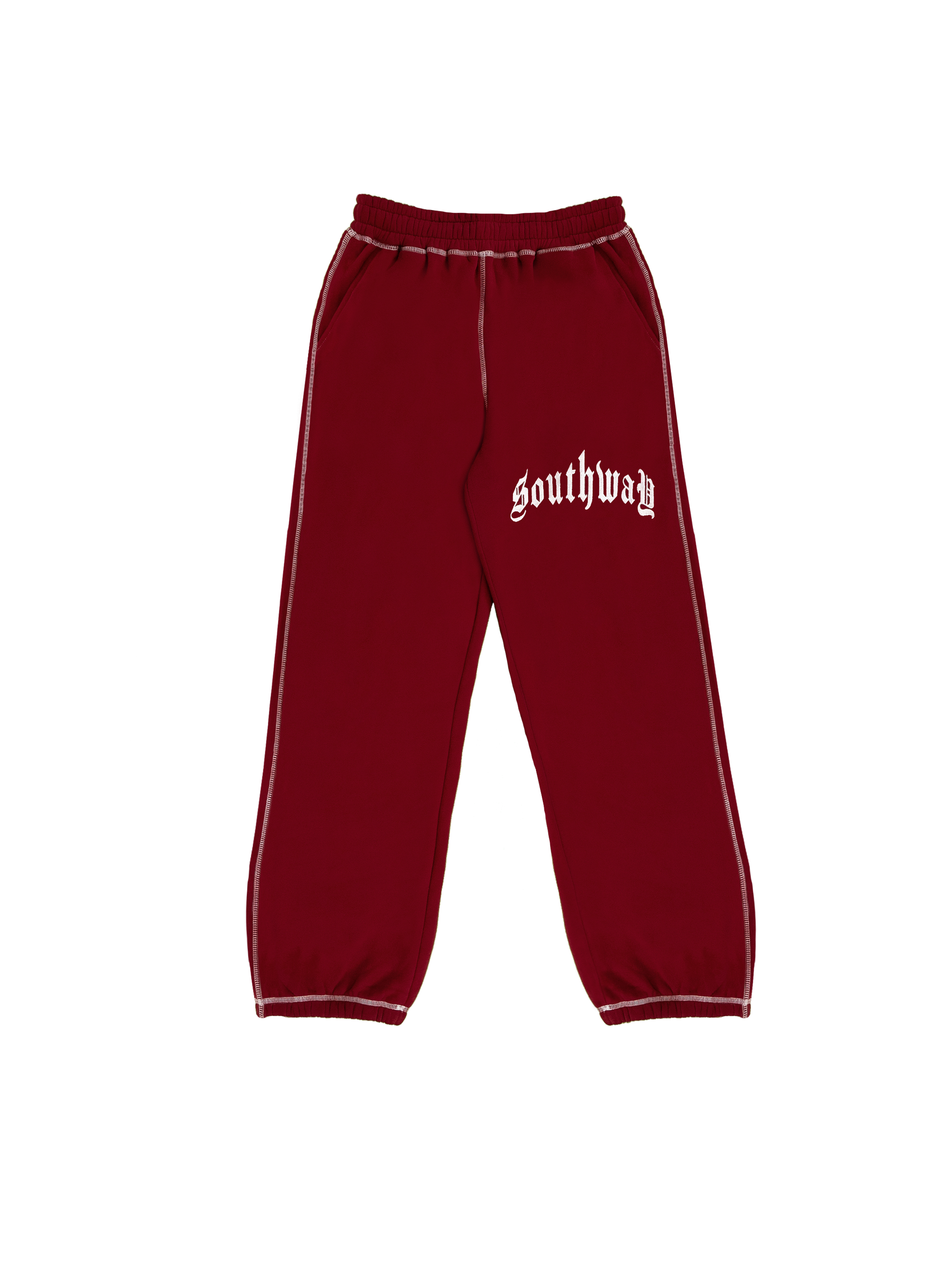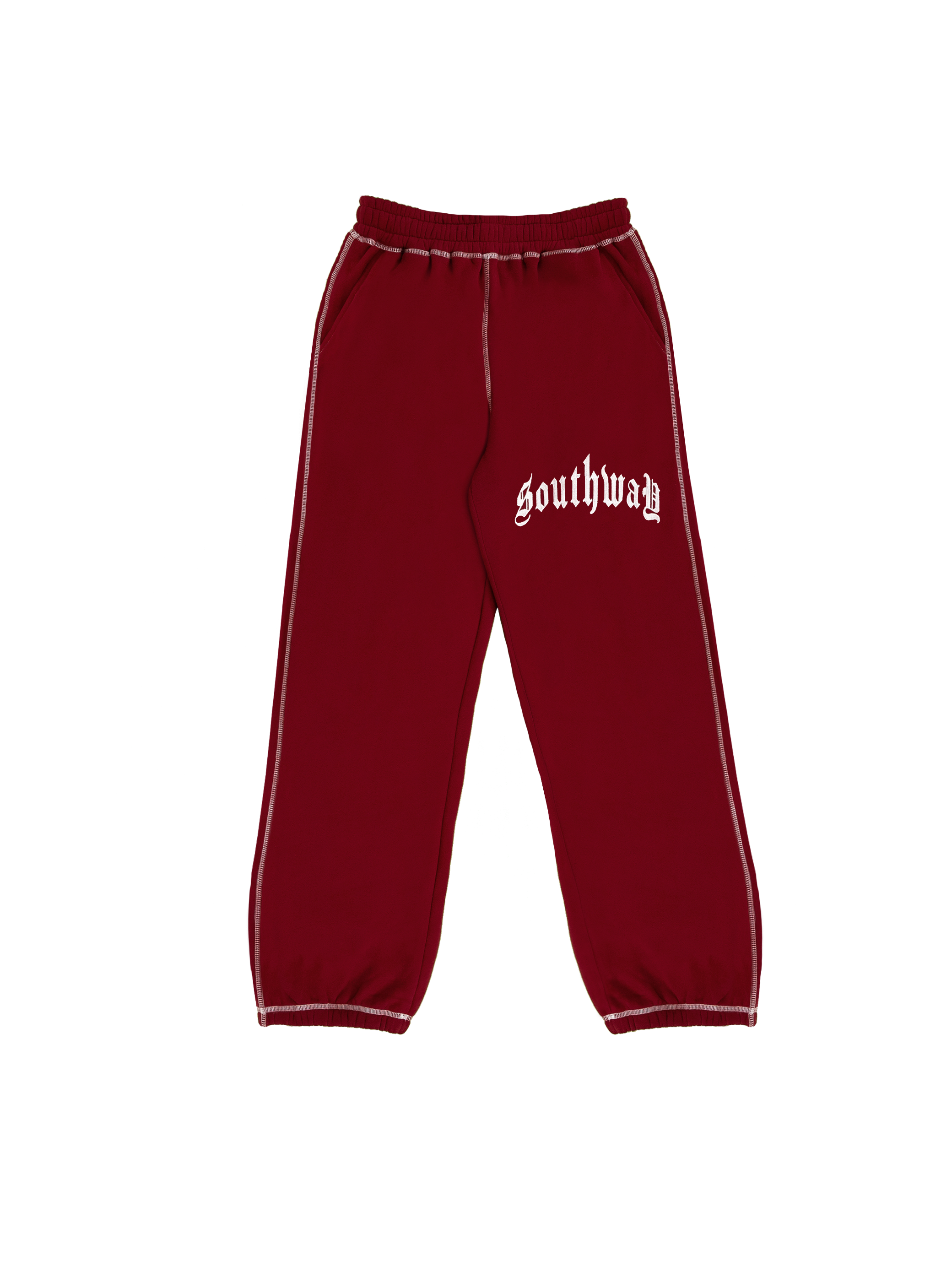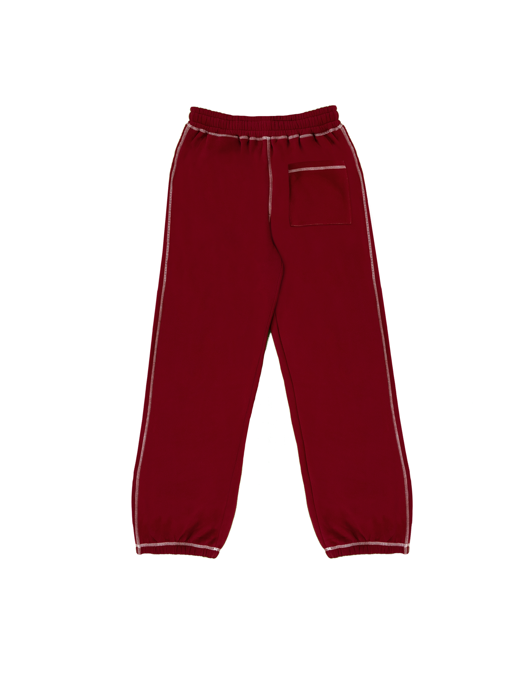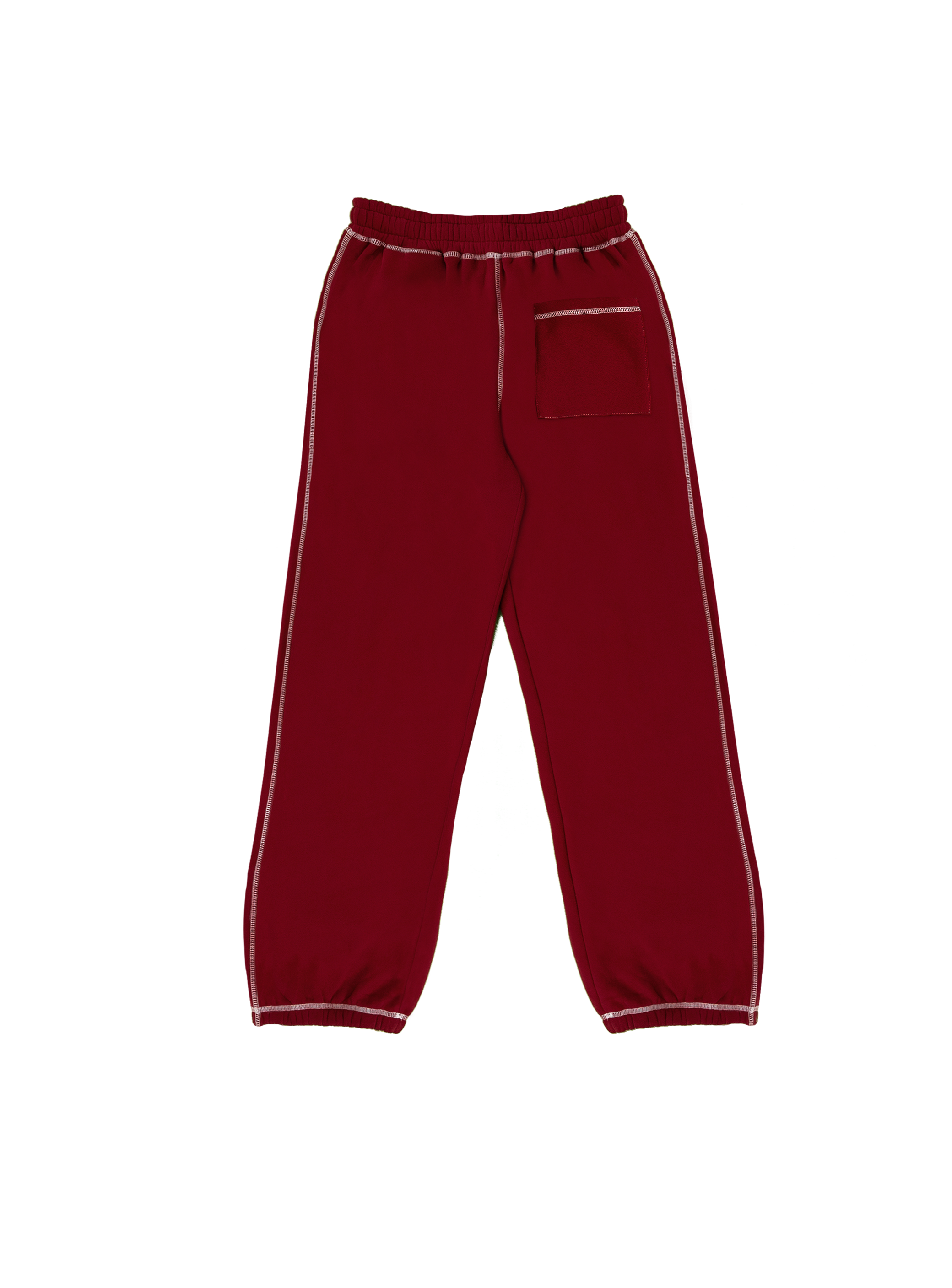 𝗕𝗨𝗥𝗚𝗨𝗡𝗗𝗔 𝗣𝗔𝗡𝗧𝗦 HEAVY & SOFT PANTS IN A BURGUNDY COLORWAY. EMBROIDERY LETTERING ON THE LEG, DETAILED WITH WHITE STICHING ON THE SEAMS. 𝗠𝗔𝗧𝗘𝗥𝗜𝗔𝗟 60% COTTON 40% POLYESTER