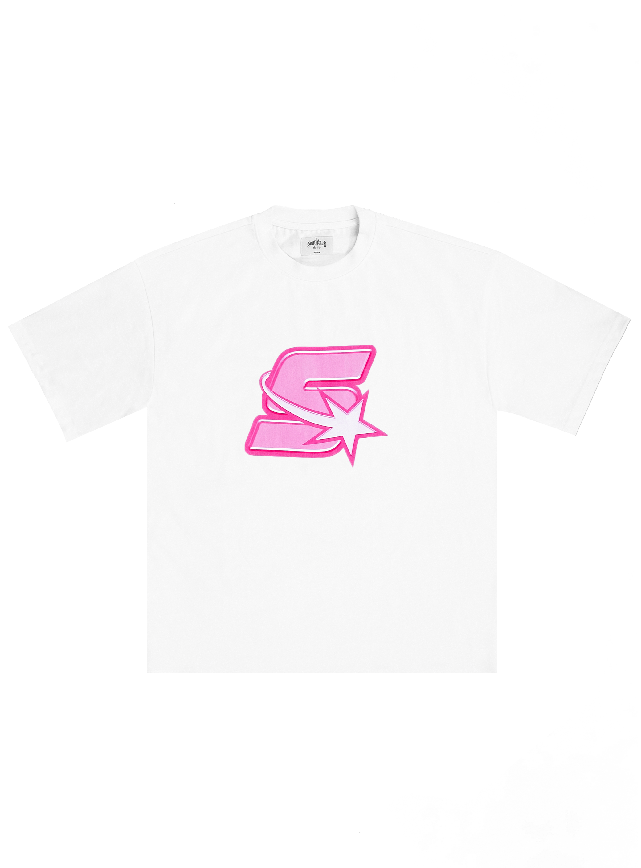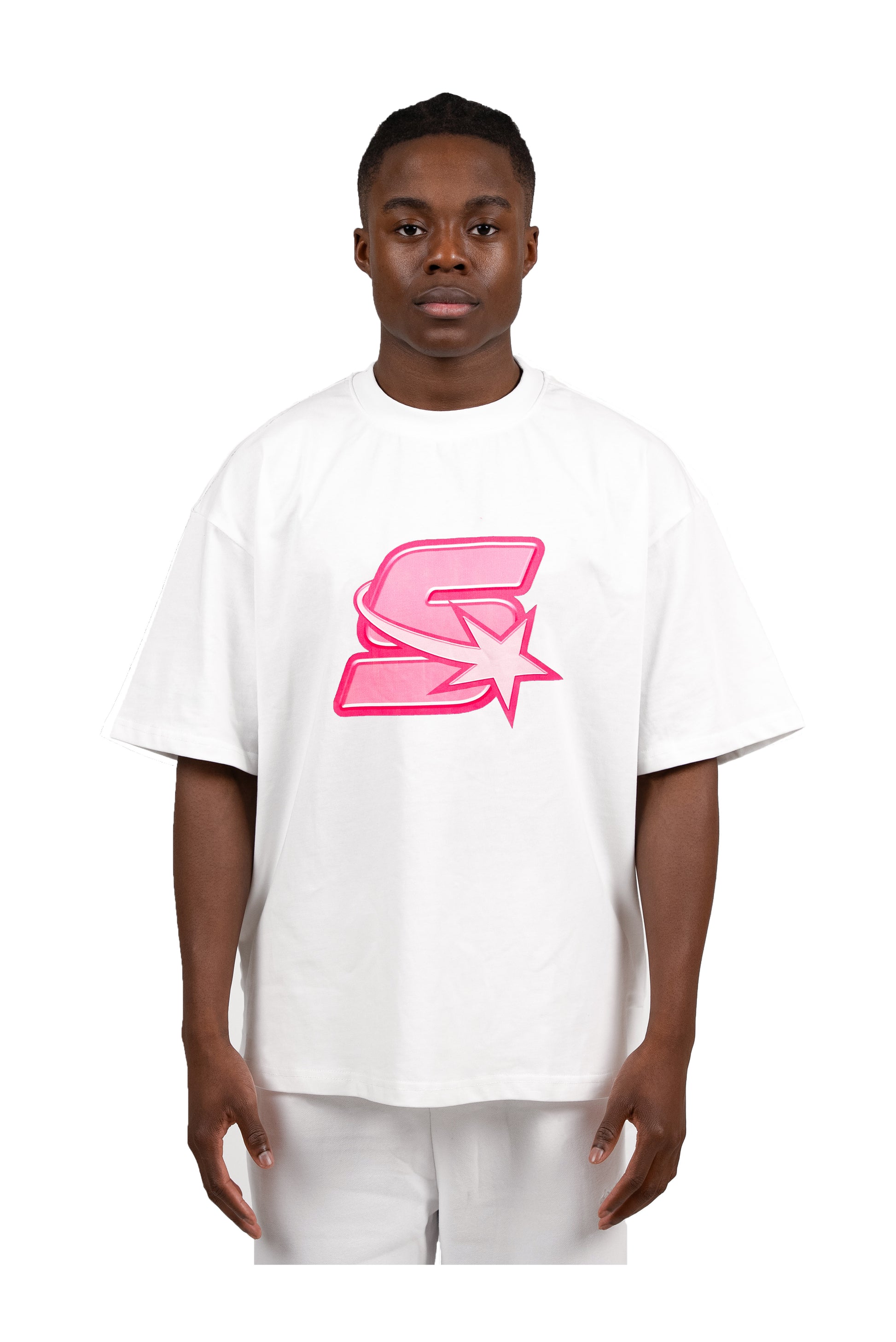 Our oversized heavy weight cotton t-shirt in a white colourway with our S star logo printed in pink. Loose fit with long sleeve and a wide chest for an oversized look.