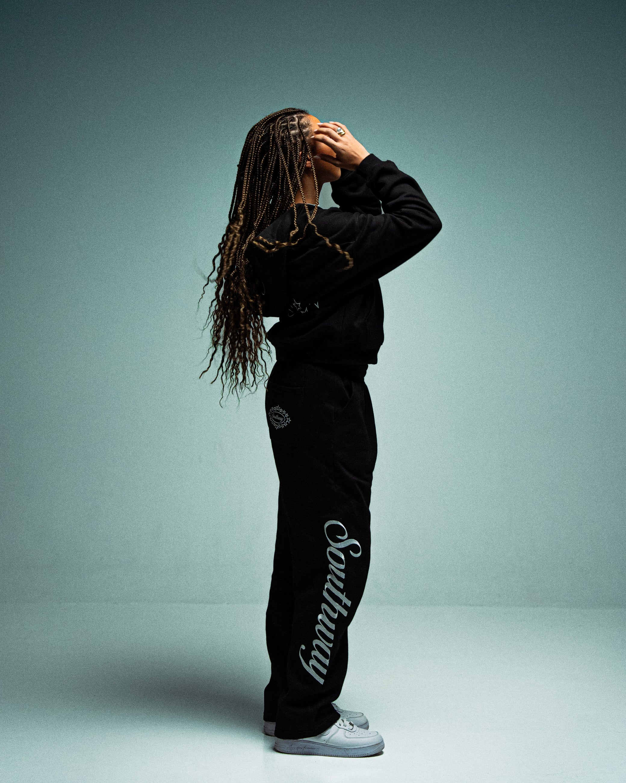 FEMALE MODEL IS 174CM WEARING SIZE XS HOODIE / S PANTS