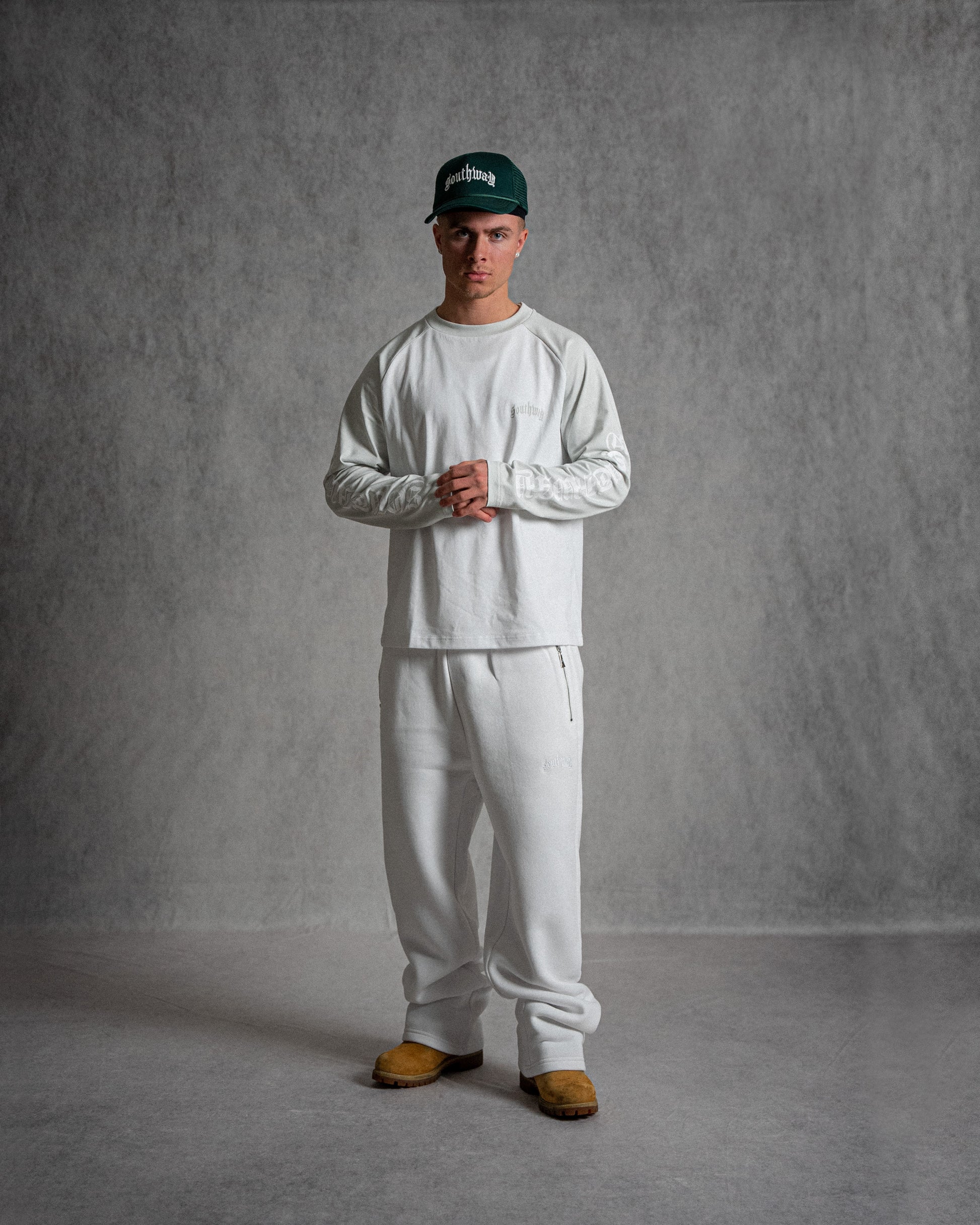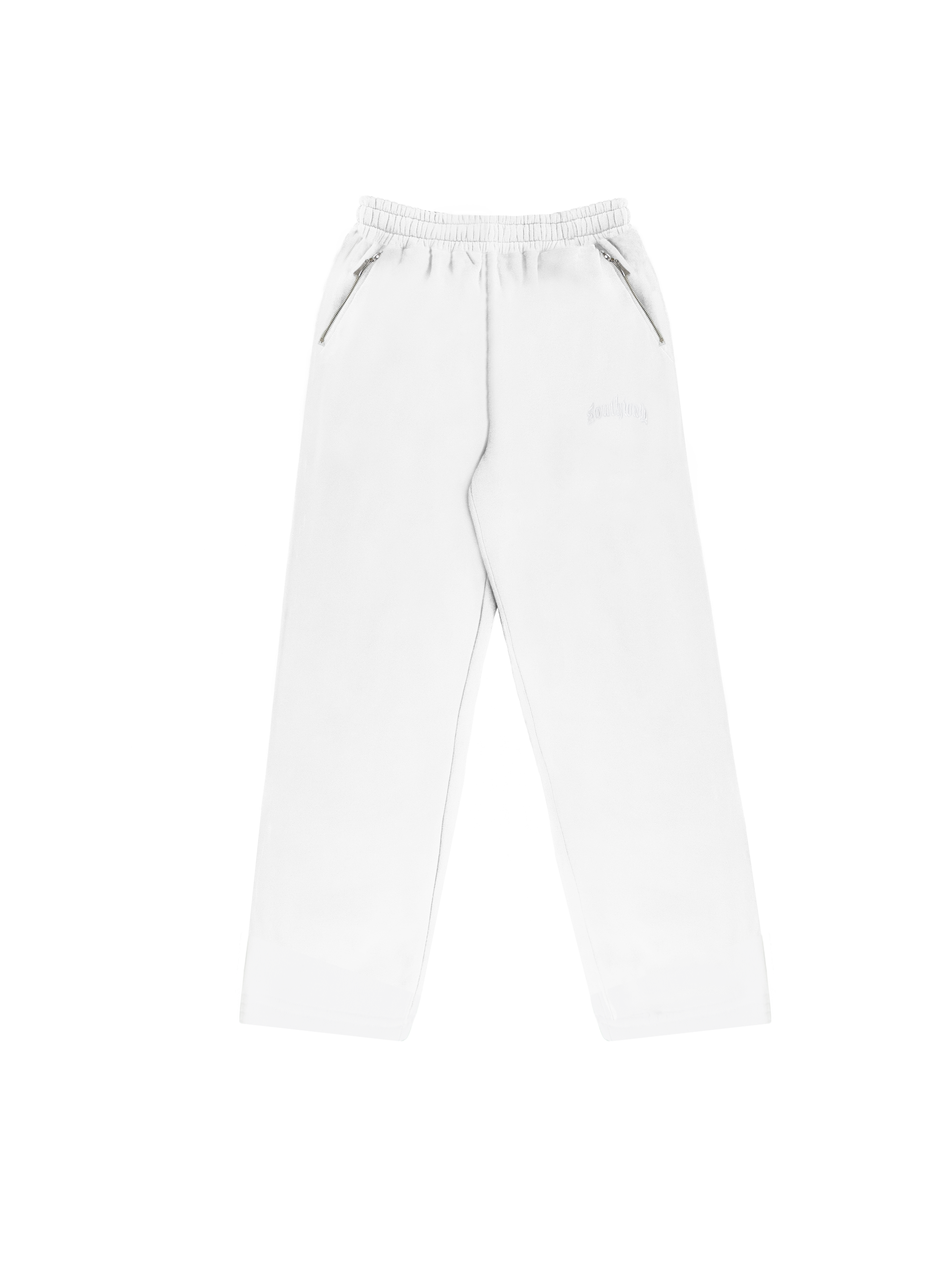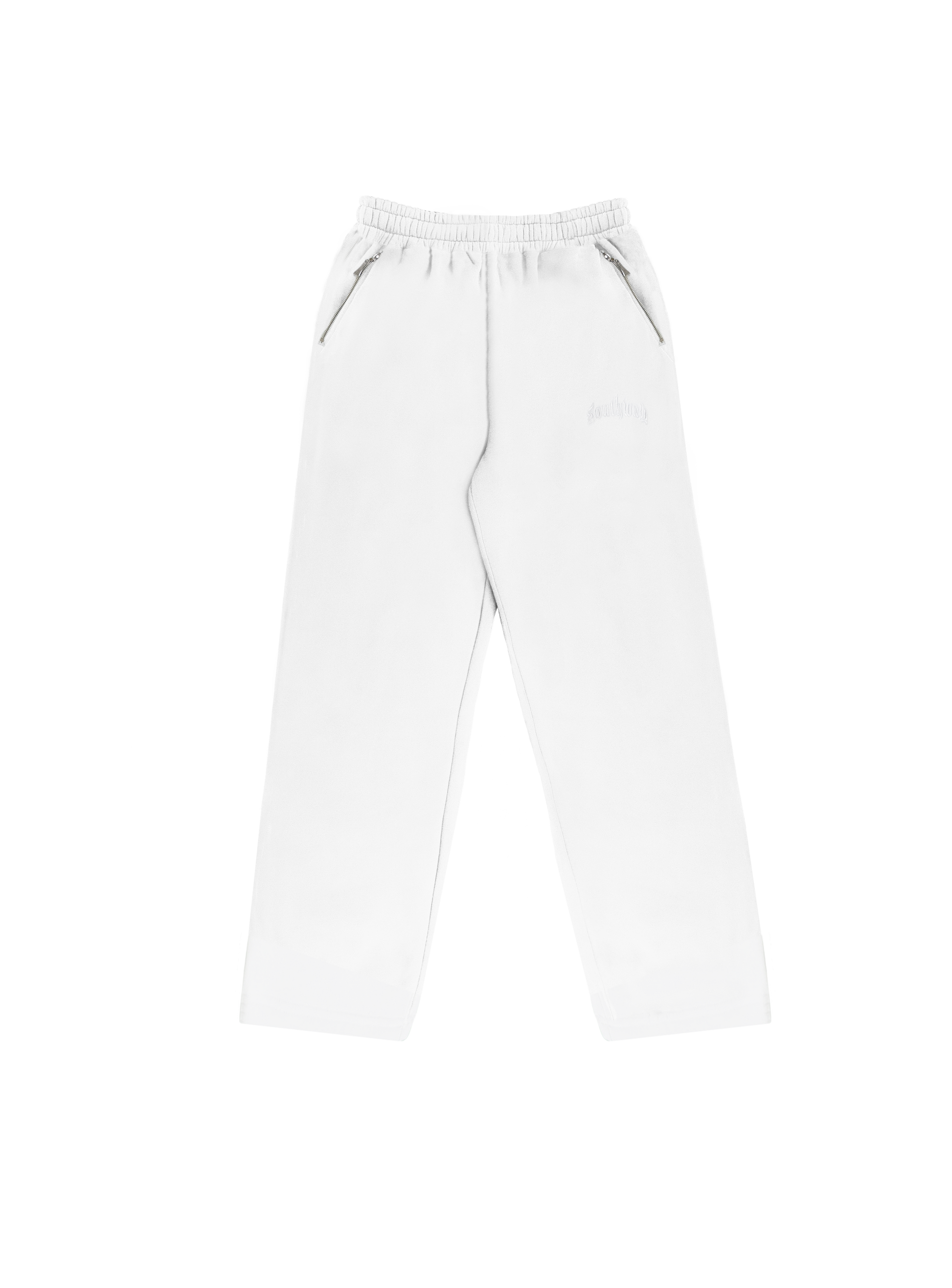 𝗧𝗥𝗔𝗖𝗞 𝗣𝗔𝗡𝗧𝗦 HEAVY & SOFT PANTS IN A WHITE COLORWAY. EMBROIDERY LETTERING ON THE LEG. 𝗠𝗔𝗧𝗘𝗥𝗜𝗔𝗟 60% COTTON 40% POLYESTER